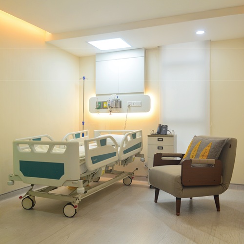 Our POD is a well-organized 118 sft semi-private treatment space designed for efficient care and continuous monitoring. The layout ensures cleanliness, comfort, and quick access to nursing support, while maintaining essential patient privacy within a shared setting. It offers a calm and structured environment ideal for short stays, treatments, or patients who require attentive care without the need for a fully private room.